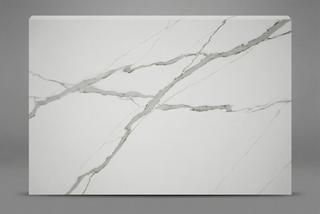 Inspired by classic Italian marble, Calacatta Aspro showcases a luminous white background with delicate grey veining that flows naturally across the slab. The soft movement adds depth without overpowering the space, making it perfect for benchtops, splashbacks, vanities, and feature surfaces.