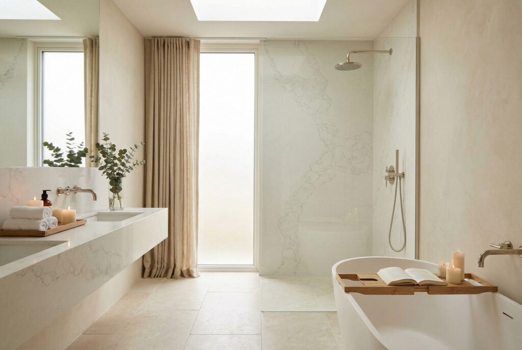 A delicate white stone with gentle, cloud-like grey veining that moves subtly across the surface. Whisper White creates a light and tranquil aesthetic, offering timeless elegance without visual heaviness. Ideal for kitchens, bathrooms, and interiors that embrace simplicity and softness.