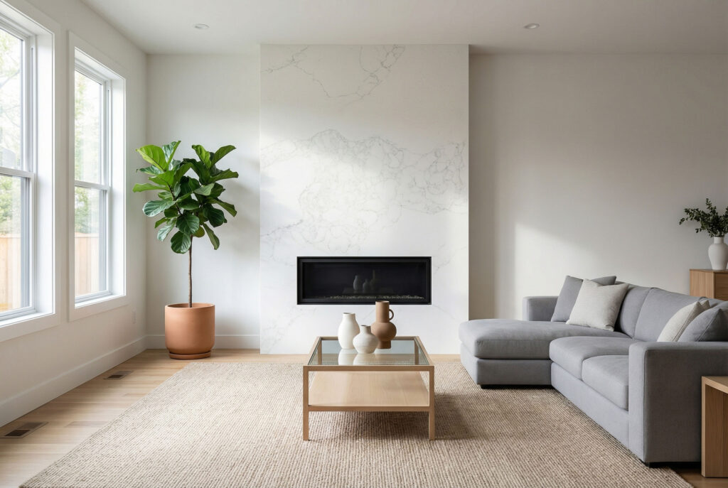 Whisper White features a soft white base with barely-there grey movement—clean, calm, and effortlessly elegant.